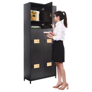 Dòng này thường được ứng dụng thành tủ sắt nhân viên nhờ thiết kế tối ưu, linh hoạt. Ngoài ra, sử dụng locker sắt trong văn phòng càng hợp lý vì kích thước lớn, phù hợp để quản lý và lưu trữ nhiều tài liệu tại cùng một nơi.