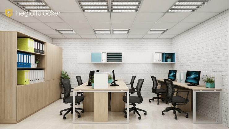 - Tủ locker gỗ được thiết kế đơn giản nhưng sang trọng, tinh tế. Giúp tăng tính thẩm mỹ và đẳng cấp cho không gian làm việc.