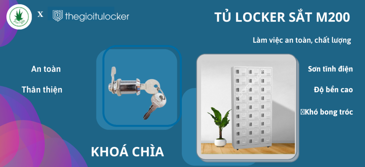 Dòng sản phẩm tủ sắt M200 khoá chìa cung cấp 9 ngăn cho một cột tủ và không giới hạn số cột, có khả năng lưu trữ giày dép cùng đồ dùng cá nhân nhỏ gọn cho hàng trăm công nhân viên. Vị trí đặt bảng tên giúp công nhân nhận dạng được vị trí tủ đồ cá nhân trong thời gian ngắn. Ngoài ra, với khả năng chống ẩm và chống cháy lan, sản phẩm là giải pháp bền bỉ nhất để bảo vệ không gian nhà máy thực phẩm, một nơi đòi hỏi yếu tố vệ sinh và an toàn cao.