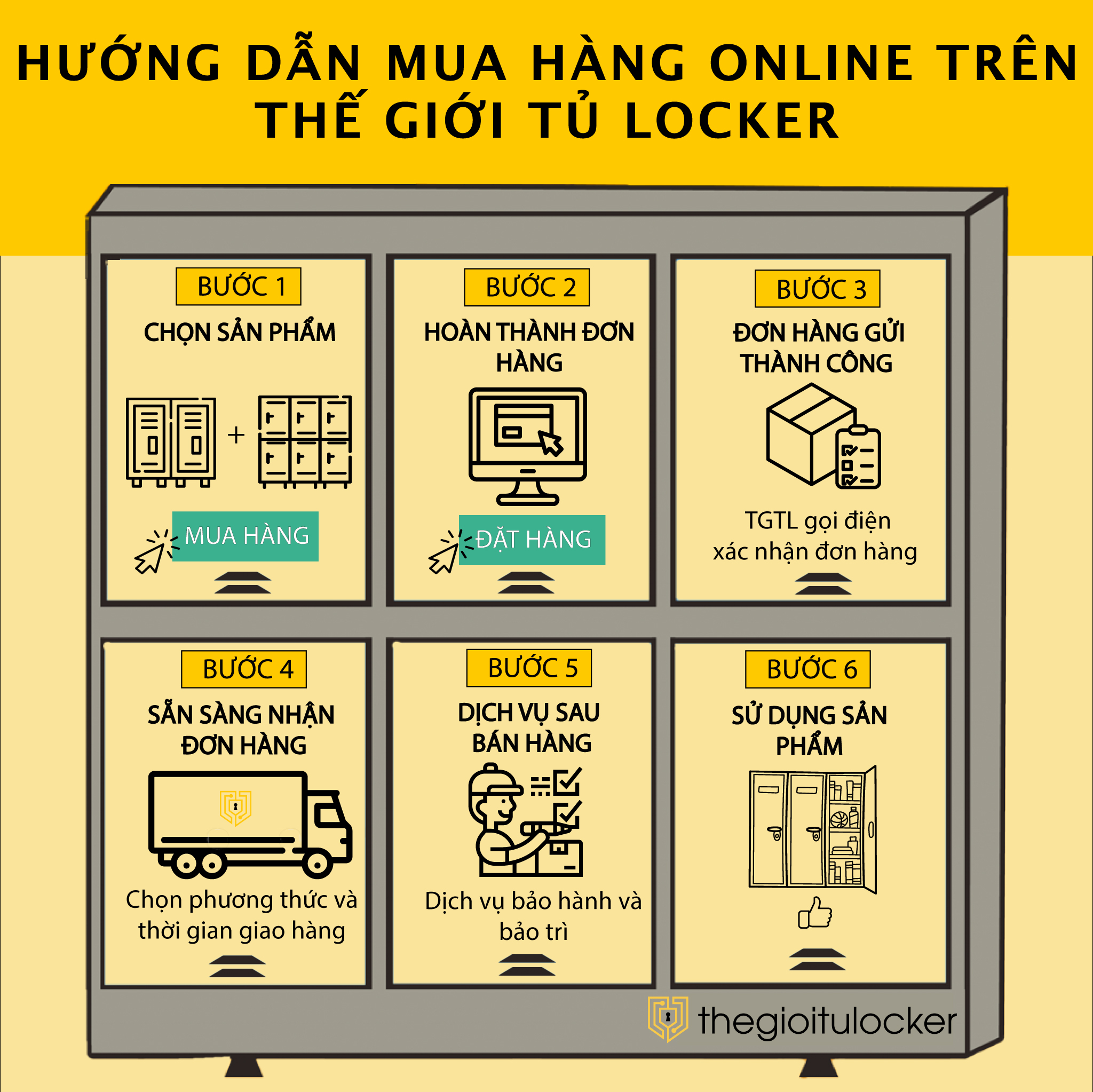 Nhằm giúp khách hàng thuận lợi hơn trong việc mua sắm, nay Thế Giới Tủ Locker ra mắt các hình thức MUA HÀNG để quý khách hàng lựa chọn và mua sắm sản phẩm một cách dễ dàng.