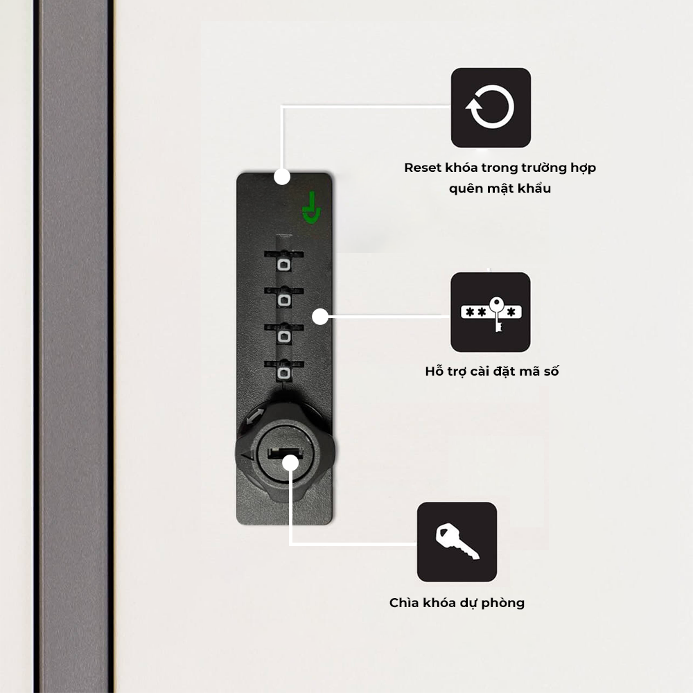 Trong những trường hợp đặc biệt như quên mật khẩu hoặc cần mở khẩn cấp, khóa vẫn có chìa cơ dự phòng đi kèm, đảm bảo không bị gián đoạn hoạt động hay thất thoát tài sản.
