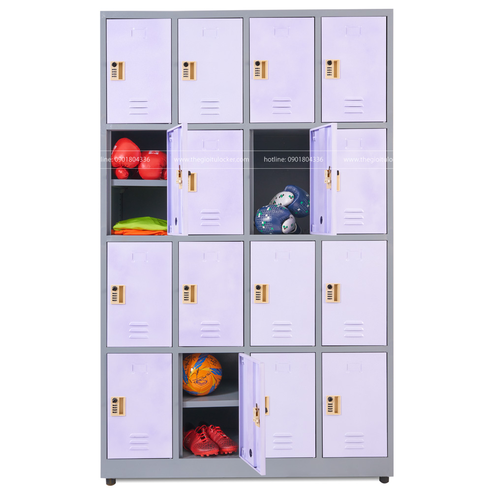 | Cấu trúc | 16 ngăn 4 cột, mỗi cánh cửa được dập bảng tên và lam gió. Tấm chia ngăn trong ngăn tủ có thể điều chỉnh vị trí Tiếp đất bằng 4 chân cao su. |