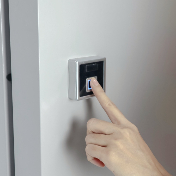 - Tủ thiết lập mở khoá bằng vân tay để đảm bảo rằng chỉ những người có quyền truy cập mới có thể mở tủ và lấy chìa khóa.